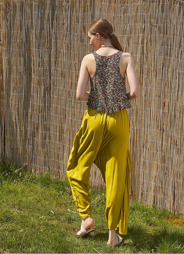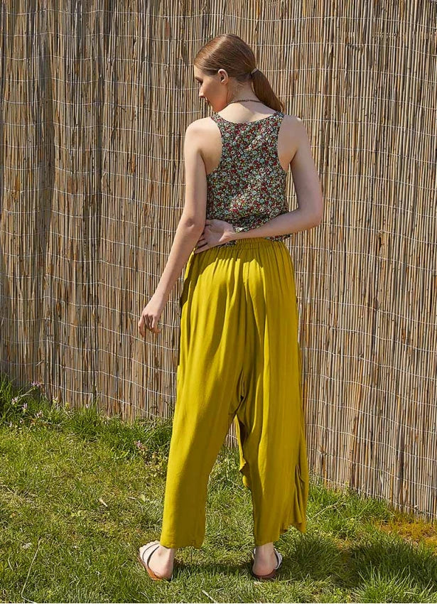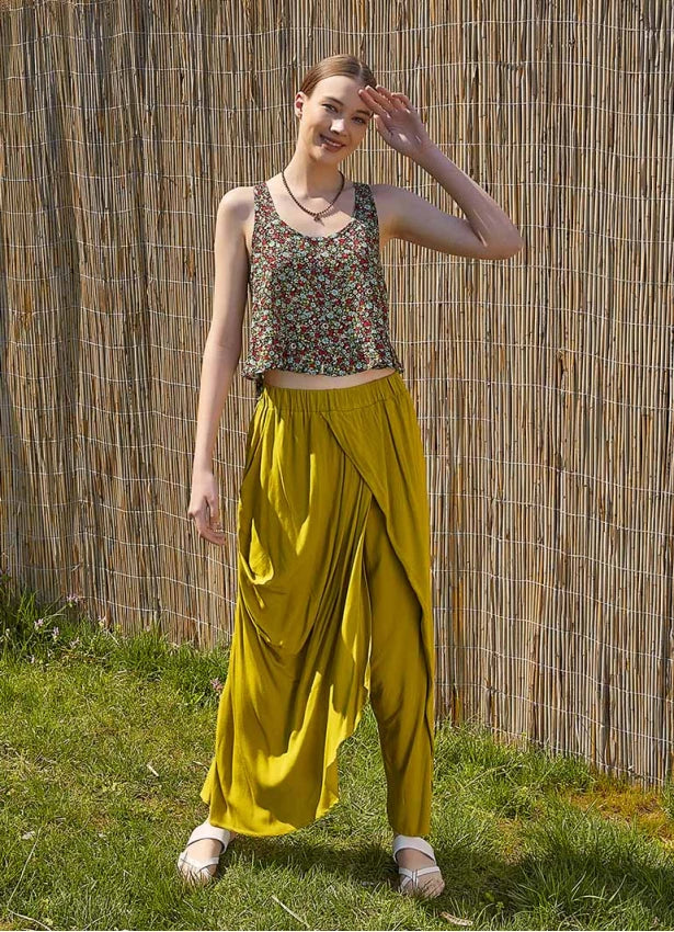 Wrap Front Loose Fit Boho Pants Olive Green